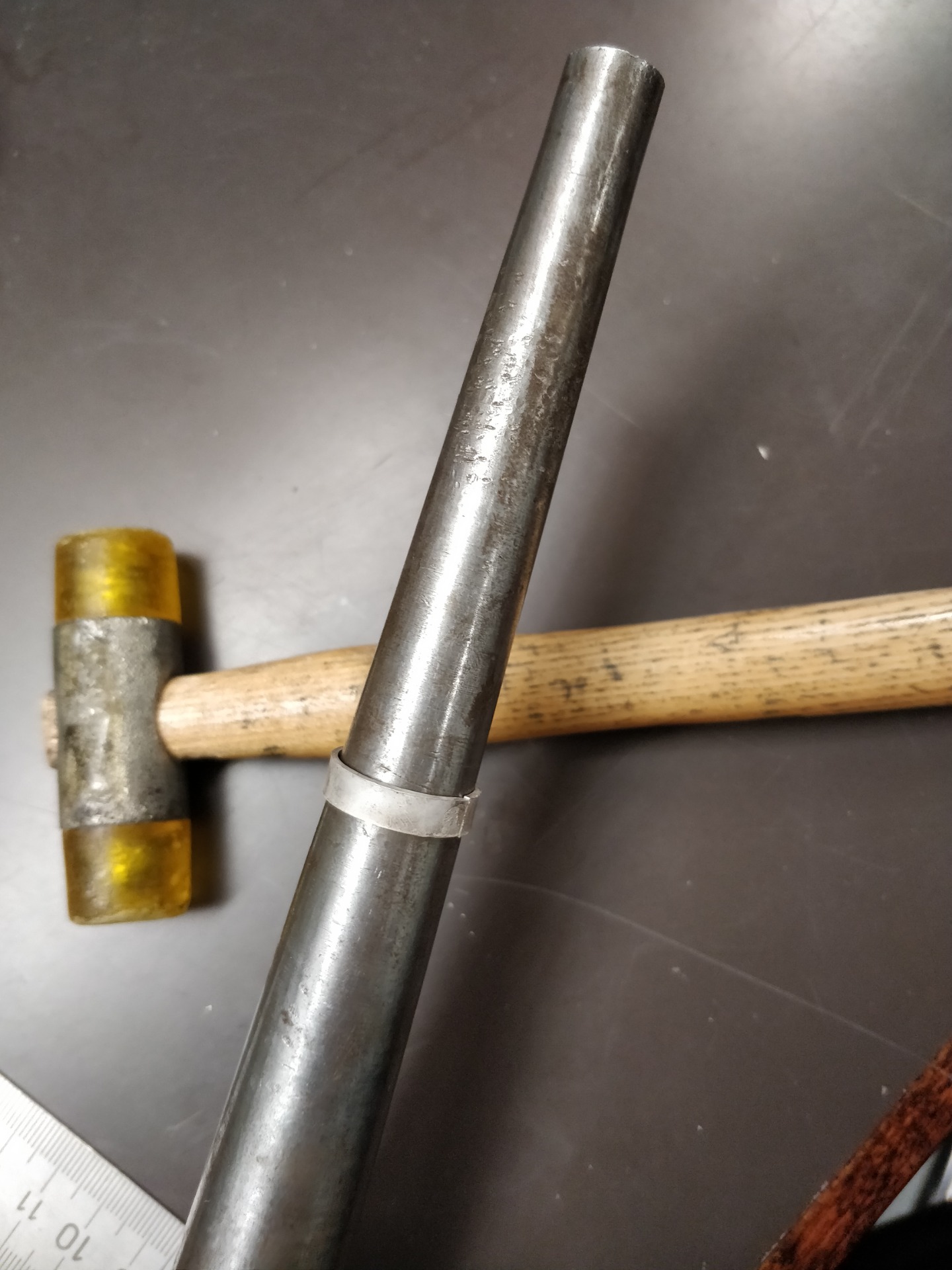 Seuraavassa vaiheessa sormus sai pyöreän muodon vasaran ja sormuspinnan avulla.