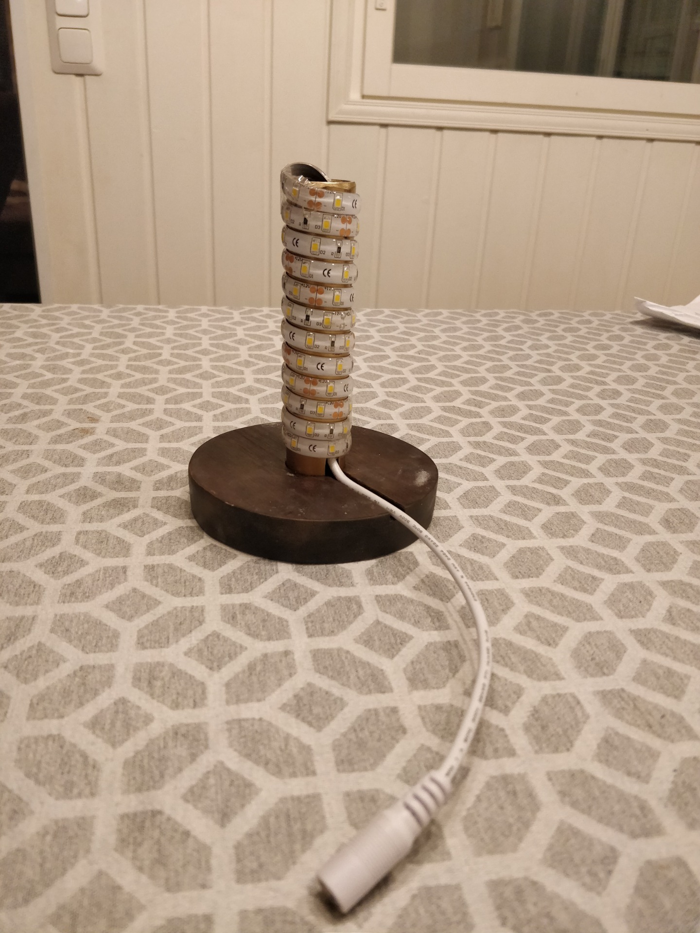 Saan melko usein ideoita, jotka on vaan pakko päästä testaamaan. Tämä lamppu on yksi näistä. Näin lieriönmuotoisen vuolukiviaihion ja sain heti ajatuksen, että siitä tulee varmasti hieno pöytävalaisin.